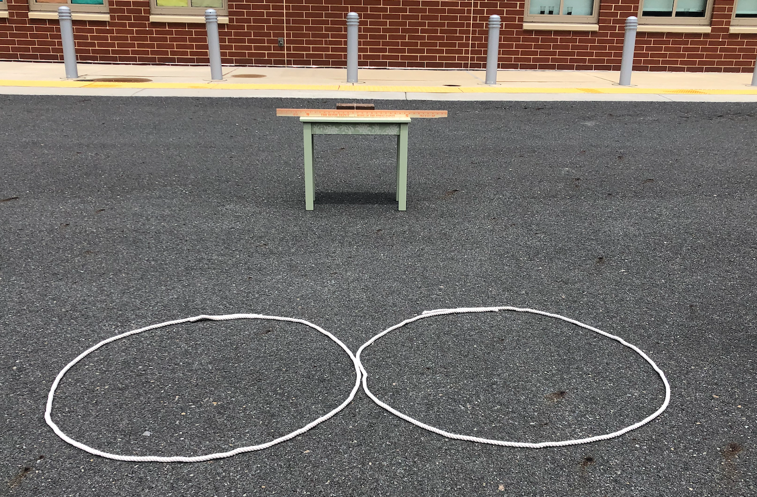 - Your setup with the hula hoops/rope loops and table should now look similar to the one in Figure 4, below.