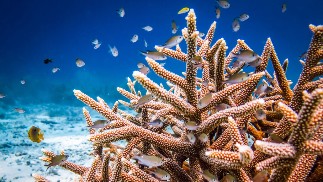 coral: Marine animals that often produce a hard and stony exoskeleton and tend to live on reefs (the exoskeletons of dead ancestor corals).